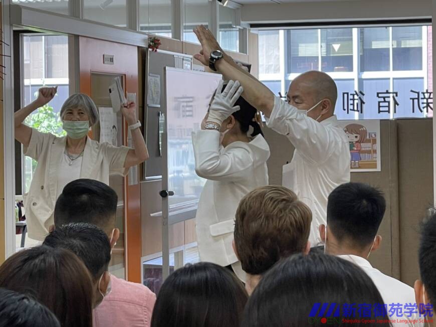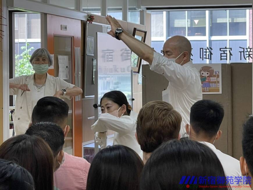 今日は四ツ谷警察署の方が学校に来ました。 学生達に日本のルールや、犯罪に巻き込まれない為の注意点などを話しました。最後には身を守る為の護身術 も実演していただきました。 四ツ谷警察署の皆様、楽しく、分かりやすいお話ありがとうございました。